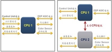 Dual CPU design,one is for image processing,and the other one is for function controlled,operating dep- andently to make all system has fast and stable response.Also,under this design make color and brightenss auto adjustment more effectively.